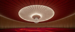 LPAは主に室内および屋上庭園の照明設計を担当しています。建築は鯤鵬(こんぽう)が翼を広げるような造形で、軽やかでありながらも堂々としており、威厳の中に親しみやすさを備えています。インテリアデザインは建築のコンセプトを引き継ぎ、「和合共生・天人合一」を軸に、光・素材・空間の連なりを巧みに融合させることで、文明の記憶を宿す殿堂的な会議空間を形成しています。照明は控えめで簡潔な手法により、個性ある光環境を創出する上に、省エネルギーと低炭素化にも配慮しています。多様なシーンに対応するため、空間ごとに異なる色温度を3種類組み合わせました。